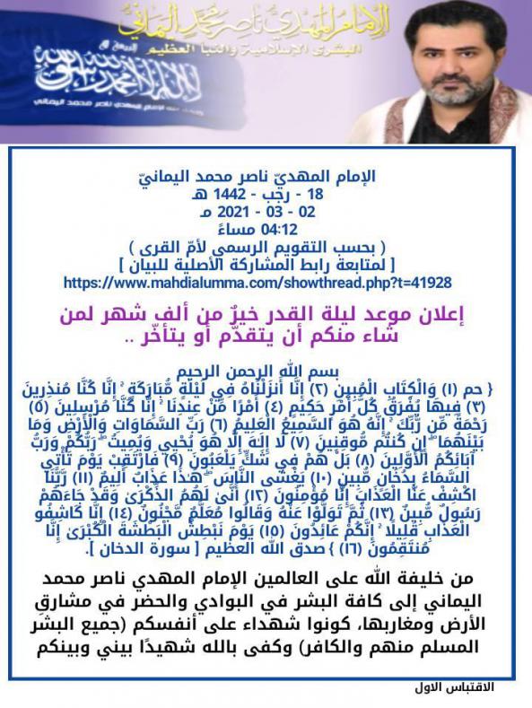 بقلم الإمام المهدي ناصر محمد اليماني يوم 08 - محرم - 1445 هـ