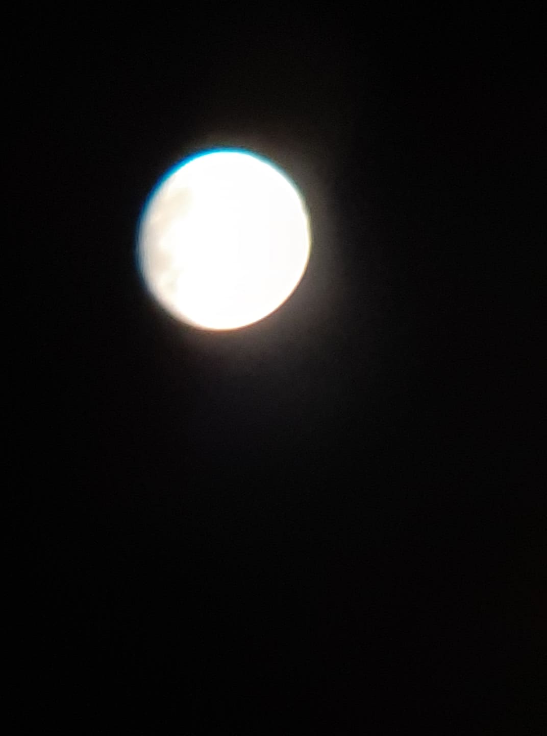 صورة القمر ليلة الأحد ليلة الابدار الثانية ويتضح من الصورة اكتمال القمر بدرا قبل موعده شرط من اشراط الساعة الكبر وهذا يثبت صدق الامام المهدي المنتظرناصر محمد اليماني