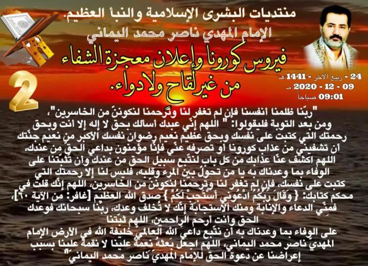 بل عذاب عالمي الادنى من قبل كوكب العذاب سقر وجعل الله السر والشفاء في البيان الحق بعنوان ((دعاء الشفاء من كورونا )) وفيه سر التصديق بالدعوة المهدية العالمية رحمة من الله عليهم لعلهم يرجعون قبل مرور كوكب العذاب سقر اللواحة للبشر ..