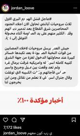 "ماذا يحدث؟ هل تخلى عنا رب موسى وهارون؟ لا أفهم ماذا يحدث؟ دبابة ميركافا إسرائيلية الصنع، فخر الصناعة في تل أبيب، والتي تبلغ تكلفتها 170 مليون دولار، تم محوها من على وجه الأرض بقذيفة آر بي جي؟ أنا لا أصدق ذلك؟ هل تم تدمير دبابة الحصن الفولاذية هذه بقذيفة آر بي جي؟ هل هناك من رأى أنه عندما أصيبت دبابتنا بهذه القذيفة اهتزت الأرض وانفجرت الدبابة وكأنها أصيبت بقنبلة وزنها طن من المخازن؟ أنا لا أصدق ذلك. ومن يقاتل معهم؟ ومن يقاتل معهم؟ وهناك أشباح مخفية تساعدهم على قتل اليهود. هل تركنا رب موسى وهارون؟ هناك قوة خفية تساعدهم وتحارب معهم. منذ 7 أكتوبر لم يخطئوا الهدف في هجماتهم علينا في كل أنحاء فلسطين، وكأن لديهم قمر صناعي. لسوء الحظ، نهاية دولة إسرائيل تقترب حتماً"