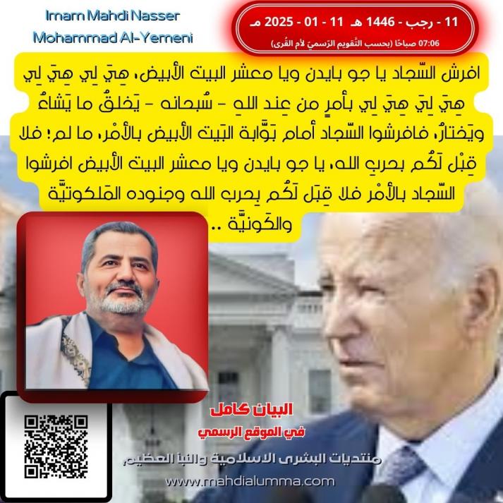 اسلموتسلمويوتكم.الله اجركم.مرتين.فان.ابيتم.وعارضتم.وحاربتم.فبشروباستمرارحرب الله الكونيه والكورونيه بباس من الله شديد بكافه جنوده فل ملكوت فلاقبل لكم بحرب الله اومناجزته ولن تتوقف جنودالله الابظهورمن جعله الله خليفته علاملكوته الامام المهدي الامميي العالمي ناصرمحمداليماني .عليه السلام .وسلامن علاالمرسليين والحمدلله رب العالمين.احدانصارالامام المهدي في عصرالحوارمن قبل الظهورعبدالنعيم الاعظم .عاصم دوبع
