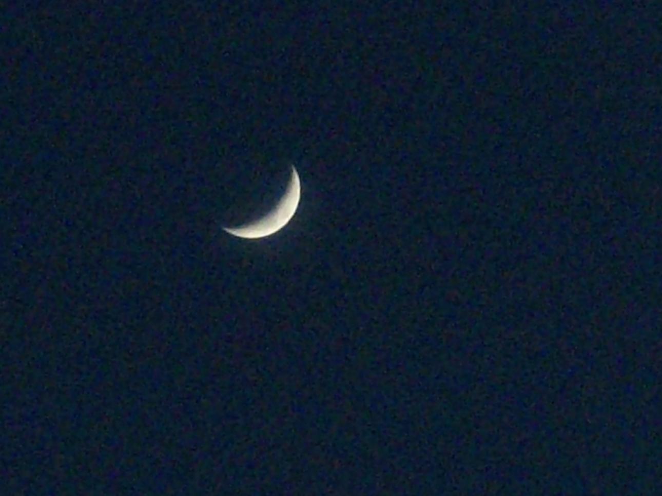 صورة للقمر على الساعة الثانية و4 دقائق بعد منتصف الليل، والقمر لا يزال في الأفق الغربي ولم يغرب بعد.